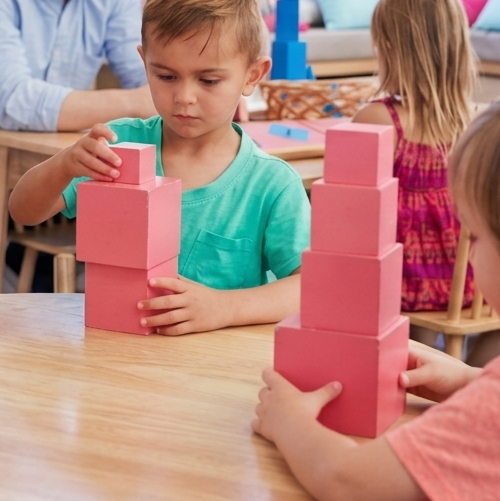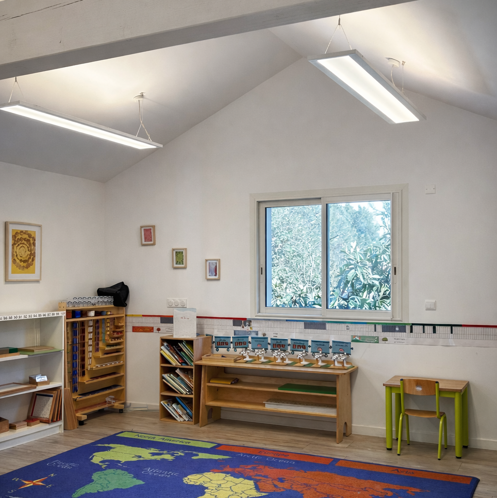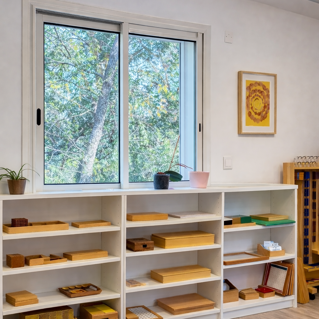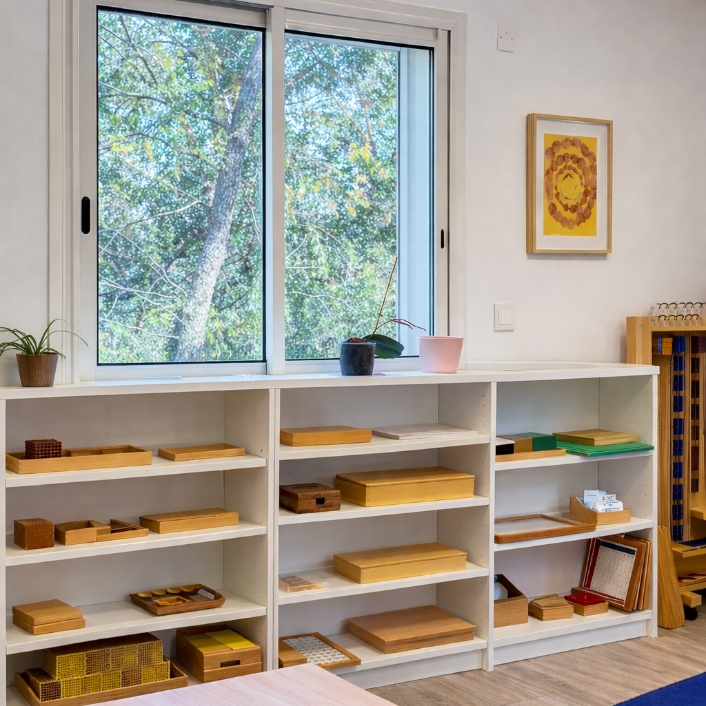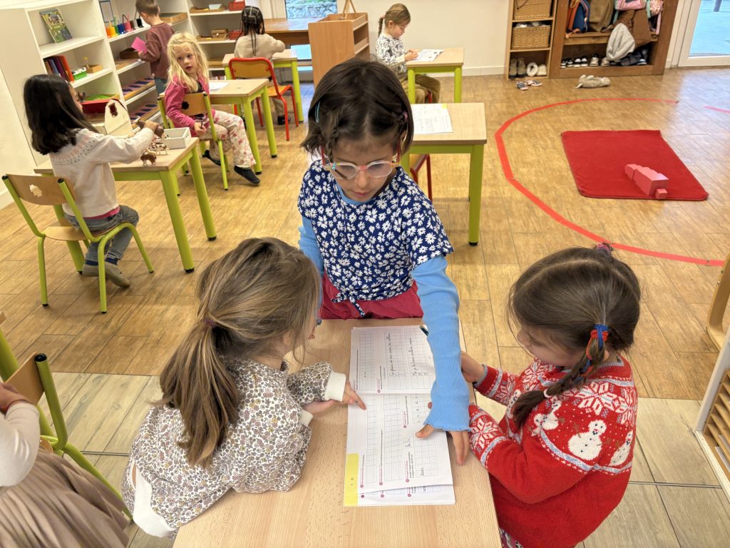 Les classes sont aménagées avec du matériel Montessori permettant aux enfants d’apprendre par la manipulation et l’expérience.